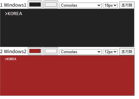 <!DOCTYPE html> <html> <head> <style> .console { flex: 1; display: block; min-height: 0; font-family: Consolas; background-color: #222; color: #f1f1f1; white-space: pre-wrap; word-break: break-word; overflow-wrap: normal; outline: none; overflow-y: auto; overflow-x: hidden; margin: 0; padding: 5px 5px 0 15px; line-height: 1.2; font-size: 37%; font-weight: 100; } </style> </head> <body> <section class="split"> <div class="panel left"> <div class="header active"> <span class="badge-num">1</span> <span>Windows1</span> <span class="more-dots"> <input type="color" class="bg-picker" data-target="leftConsole"> <input type="color" class="txt-picker" data-target="leftConsole"> <select class="font-picker" data-target="leftConsole"> <option value="Consolas">Consolas</option> <option value="Courier New">Courier New</option> <option value="Menlo">Menlo</option> <option value="Monaco">Monaco</option> <option value="Noto Sans Mono KR">Noto Sans Mono KR</option> </select> <select class="size-picker" data-target="leftConsole"> <option value="12px">12px</option> <option value="14px">14px</option> <option value="16px">16px</option> <option value="18px">18px</option> <option value="18px">20px</option> </select> <button type="button" class="reset-btn" data-target="leftConsole">초기화</button> </span> </div> <textarea class="console" id="leftConsole" tabindex="0" data-index="0" spellcheck="false" rows="6" cols="50">></textarea> </div> <div class="splitbar1" aria-hidden="true"></div> <div class="panel right" style="flex:1"> <div class="header"> <span class="badge-num">2</span> <span>Windows2</span> <input type="color" class="bg-picker" data-target="rightConsole"> <input type="color" class="txt-picker" data-target="rightConsole"> <select class="font-picker" data-target="rightConsole"> <option value="Consolas">Consolas</option> <option value="Courier New">Courier New</option> <option value="Menlo">Menlo</option> <option value="Monaco">Monaco</option> <option value="Noto Sans Mono KR">Noto Sans Mono KR</option> </select> <select class="size-picker" data-target="rightConsole"> <option value="12px">12px</option> <option value="14px">14px</option> <option value="16px">16px</option> <option value="18px">18px</option> <option value="18px">20px</option> </select> <button type="button" class="reset-btn" data-target="rightConsole">초기화</button> </div> <textarea class="console" id="rightConsole" tabindex="0" data-index="1" spellcheck="false" rows="6" cols="50">></textarea> </div> </section> <br><br> <script> const DEFAULT_STYLE = { bg: "#222222", txt: "#f1f1f1", font: "Consolas", size: "14px" }; const KEY_PREFIX = "CONSOLE_STYLE_"; // 초기화 & 복원 document.querySelectorAll("textarea.console").forEach(initConsole); function initConsole(ta) { const id = ta.id; const saved = JSON.parse(localStorage.getItem(KEY_PREFIX + id) || "{}"); const style = { ...DEFAULT_STYLE, ...saved }; ta.style.backgroundColor = style.bg; ta.style.color = style.txt; ta.style.fontFamily = style.font; ta.style.fontSize = style.size; syncPicker(id, "bg-picker", style.bg); syncPicker(id, "txt-picker", style.txt); syncPicker(id, "font-picker", style.font); syncPicker(id, "size-picker", style.size); } // 공통 이벤트 처리 document.addEventListener("input", handleChange); document.addEventListener("change", handleChange); function handleChange(e) { const t = e.target; const id = t.dataset.target; if (!id) return; const ta = document.getElementById(id); if (t.classList.contains("bg-picker")) { ta.style.backgroundColor = t.value; save(id, { bg: t.value }); } if (t.classList.contains("txt-picker")) { ta.style.color = t.value; save(id, { txt: t.value }); } if (t.classList.contains("font-picker")) { ta.style.fontFamily = t.value; save(id, { font: t.value }); } if (t.classList.contains("size-picker")) { ta.style.fontSize = t.value; save(id, { size: t.value }); } } // 초기화 document.addEventListener("click", function (e) { if (!e.target.classList.contains("reset-btn")) return; const id = e.target.dataset.target; const ta = document.getElementById(id); localStorage.removeItem(KEY_PREFIX + id); initConsole(ta); }); // 저장 function save(id, patch) { const key = KEY_PREFIX + id; const cur = JSON.parse(localStorage.getItem(key) || "{}"); localStorage.setItem(key, JSON.stringify({ ...cur, ...patch })); } // picker 동기화 function syncPicker(id, cls, value) { document .querySelectorAll(`.${cls}[data-target="${id}"]`) .forEach(p => p.value = value); } </script> </body> </html> |